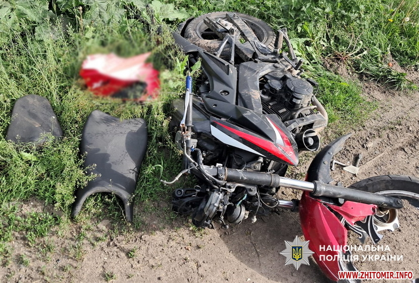«Дорожньо-транспортна пригода сталася 31 травня близько 16:30 у селі Паволочі. На місці події працювала слідчо-оперативна група відділення поліції №1 (с-ще Попільня) Житомирського райуправління №2. Попередньо, на перехресті вулиць села сталося зіткнення автомобіля-фургона Volkswagen, під керуванням 31-річного місцевого жителя, із мотоциклом Forte, за кермом якого перебував 20-річний киянин», - йдеться у повідомленні.