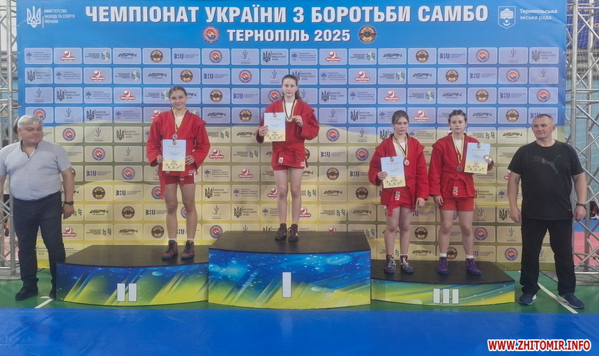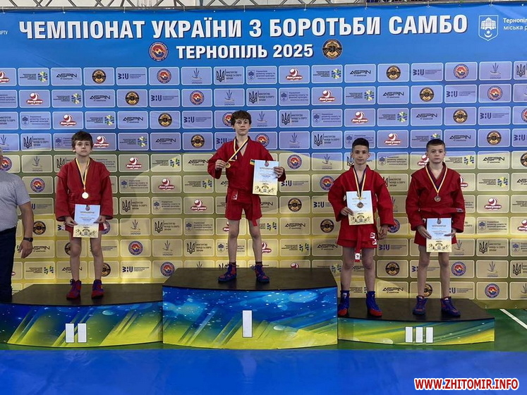«З 2 по 4 червня у м. Тернопіль відбувся Чемпіонат України з боротьби самбо серед підлітків (12–14 років). Понад 300 учасників з 21 регіону країни змагалися за звання найкращих. Представники Житомирщини (ДЮСШ ЖМР, Коростишів КДЮСШ, ЖЮД, ЖОДЮСШ «Авангард») показали справжній бійцівський дух та принесли області низку медалей», - йдеться в повідомленні.