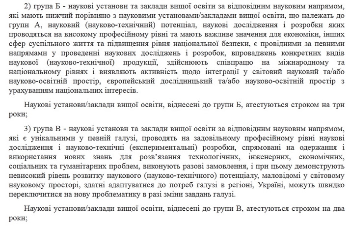 За результатами атестації зазначені заклади віднесені до груп Б і В, тобто вони атестовані строком на три та два роки, відповідно.