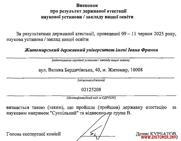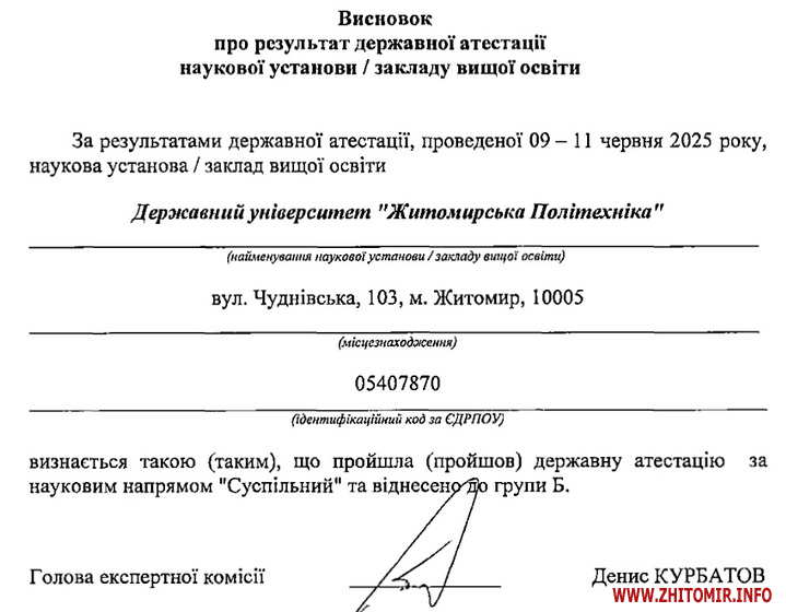 Як повідомляв Житомир.info, університети Житомира в академічному рейтингу закладів вищої освіти України «ТОП-200 Україна 2025» займають такі місця: «Житомирська політехніка» - 33, ЖДУ – 74, ПНУ – 85.
