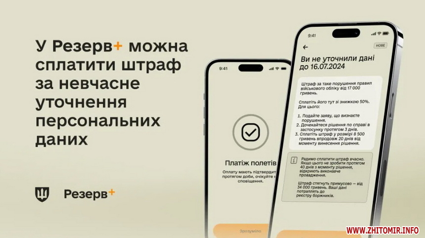 У застосунку «Резерв+» можна сплатити штраф за невчасне уточнення персональних даних. Пізніше з’явиться можливість сплатити штраф за інші порушення військового обліку.