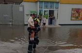 Через високу воду в приміщенні магазину люди не могли самостійно залишити будівлю, тож рятувальникам довелося допомагати їм виходити — деяких винесли на руках.
