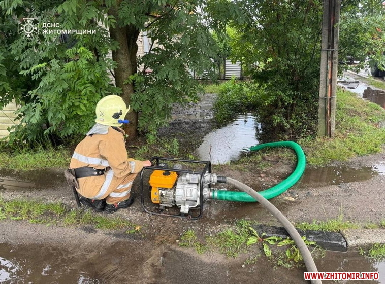 Нагадаємо, 19 липня рятувальники відкачали з приватних домоволодінь понад 300 куб. м води. Станом на вечір того ж дня роботи тривали поблизу одного з магазинів у Звягелі, де через високий рівень води люди не могли самостійно залишити будівлю. вранці 19 липня рятувальники прибрали повалене дерево у с. Будичани та відкачували воду у с. Баранівка та с. Калиновий гай. Цього ж дня у Житомирській області рятувальники 10 разів виїжджали на ліквідацію наслідків поривів вітру та злив. Також за вихідні, 18 та 19 липня, Служба відновлення у Житомирської області близько 40 разів прибирала дерева, які перекривали проїзну частину.