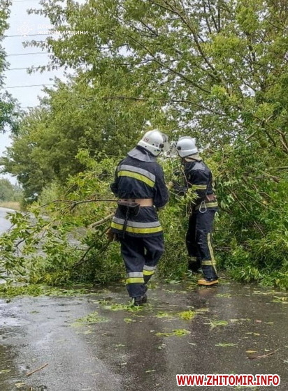 «Сильна злива, що пройшла територією Житомирщини, спричинила підтоплення дворів, підвалів та повалення дерев на автошляхи. Підрозділи ДСНС області оперативно реагували на кожен виклик, аби якнайшвидше усунути наслідки негоди та допомогти населенню», - йдеться в повідомленні.