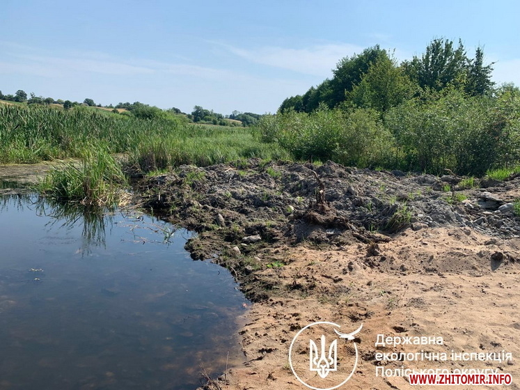 «16 липня 2025 року, під час розгляду численних звернень громадян, які надійшли до інспекції, у тому числі через вебресурс «ЕкоЗагроза», державні інспектори з охорони навколишнього природного середовища Поліського округу провели обстеження на території Брониківської сільради Звягельського району. Під час обстеження інспектори встановили факти проведення робіт на землях водного фонду», - йдеться в повідомленні.
