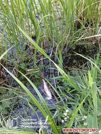 «21 липня 2025 року реагуючи на повідомлення, що надійшло на телефонну «гарячу лінію» Держекоінспекції Поліського округу щодо виявлення загиблої риби на річці Хомора, на межі Хмельницької та Житомирської областей, державні інспектори з охорони навколишнього природного середовища виїхали за вказаною адресою для обстеження водойми. Під час обстеження інспектори спостерігали масове скупчення риби, що захоплювала повітря під поверхнею води, а також загиблі водні біоресурси на берегах річки», - йдеться в повідомленні.
