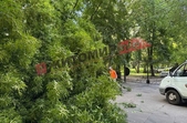 За 10-15 хвилин біля дерева вже були працівники «КП «Зеленбуд», які звільняли проїзд між будинками.