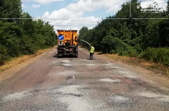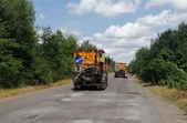 - влаштовують вирівнюючий шар покриття з асфальтобетонної суміші «картами» на пошкоджених ділянках дороги Т-23-09 Шепетівка – Чуднів – Бердичів;