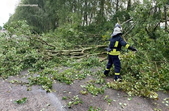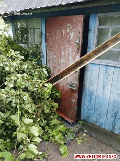 А в селі Турчинка Коростенського району дерево впало на територію приватного домогосподарства та заблокувало вхід до житлового будинку. Рятувальники за допомогою спецінструменту розрізали стовбур та звільнили прохід.