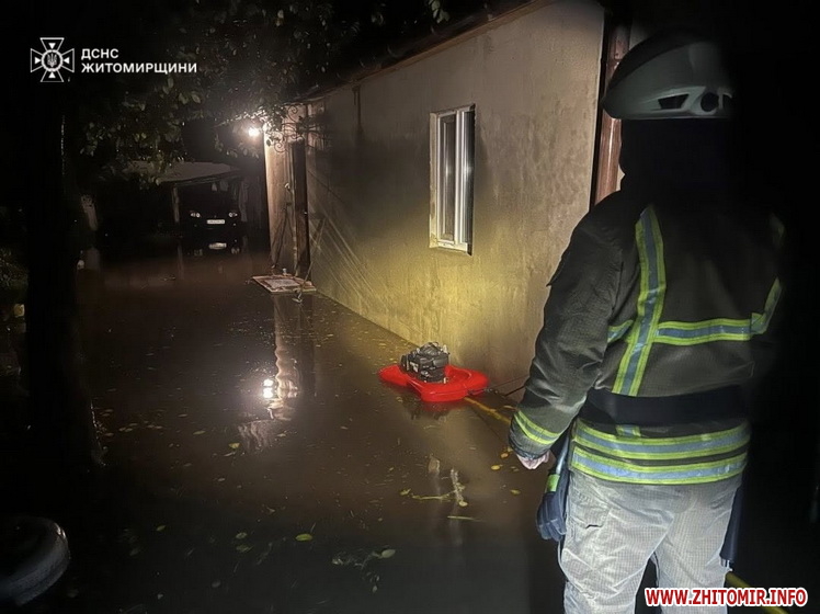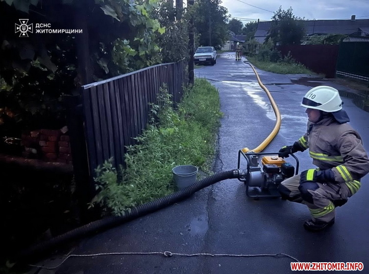 «Сильна злива, що пройшла територією Житомирщини, спричинила підтоплення дворів, підвалів та повалення дерев.Підрозділи ДСНС області реагували на кожен виклик, аби якнайшвидше усунути наслідки негоди та допомогти населенню. Зокрема, одразу в кількох будинках у місті Звягель проводилися роботи з ліквідації підтоплень: вода потрапила в житлові кімнати, а також у підвали та двори приватних осель.Загалом упродовж доби бійці ДСНС відкачали 490 куб.м води», - йдеться у повідомленні.