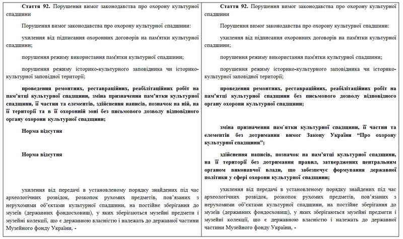 Нижче – скриншот з порівняльної таблиці до законопроєкту про зміни до ст.92 КУпАП, яка передбачає відповідальність у вигляді накладення штрафу на громадян від п'ятдесяти до ста неоподатковуваних мінімумів доходів громадян (від 850 до 1700 грн) і на посадових осіб – від ста до ста п'ятдесяти неоподатковуваних мінімумів доходів громадян (від 1700 до 2550 грн).