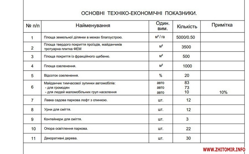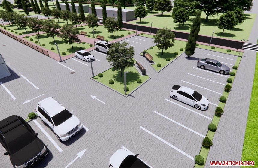 Також у проєкті зазначено, що роботи по благоустрою території проводити не раніше 1 жовтня 2025 року та після погодження з відповідними службами інженерної інфраструктури міста, управлінням патрульної поліції в Житомирській області, департаменту патрульної поліції, а також згідно з актом обстеження зелених насаджень, що підлягають видаленню.