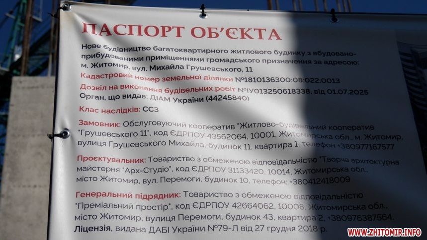 «Я направив спеціалістів на проведення заходів державного нагляду контролю у сфері будівництва. Представники забудовника надали проєктну документацію та експертний висновок з класом наслідків об'єкта СС3. Оскільки функції державного нагляду (контролю) в галузі будівництва делеговані органам місцевого самоврядування рамках децентралізації, до повноважень органів місцевого самоврядування входять виключно об'єкти, які знаходяться на території громади та належать до класу наслідків СС1, СС2. Клас наслідків СС3 – це виключно повноваження центрального органу виконавчої влади. Тобто Державної інспекції архітектури та містобудування (ДІАМ). Перевірка планувалася з 28 березня до 10 квітня 2025 року. Оскільки даний об'єкт поза межами нашої компетенції, ми не маємо права проводити перевірки. Спеціалісти надали мені службову записку. За результатами цієї інформації, ми надіслали лист міністерству про те, що об'єкт має клас наслідків СС3, і ми не можемо здійснити перевірку», – розповідає начальник управління державного архітектурно-будівельного контролю Житомирської міської ради Олександр Магдюк.