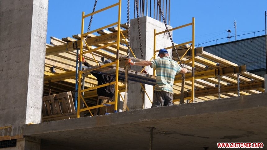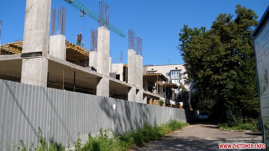 У Житомирі на вул. Михайла Грушевського, 11 будують новий 17-поверховий будинок. 1 серпня на території активно тривають роботи. Бачимо, що вже звели майже два поверхи.