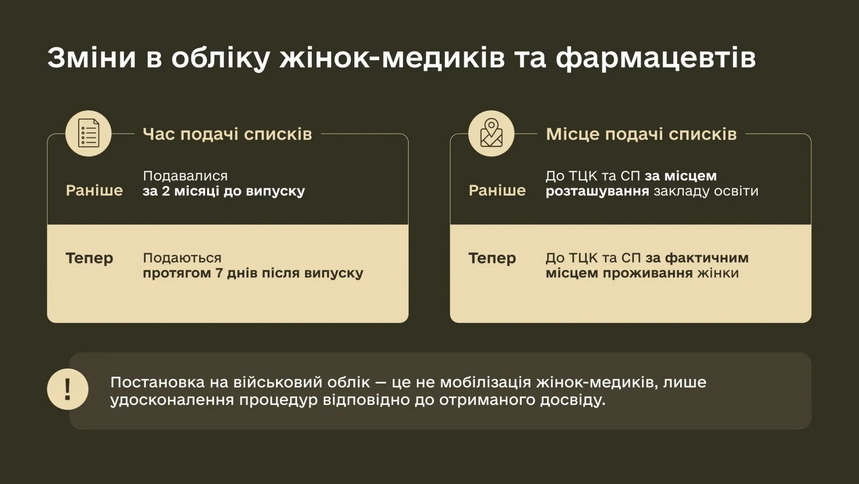 автоматичне взяття на військовий облік жінок з медичною освітою без їх особистої присутності;