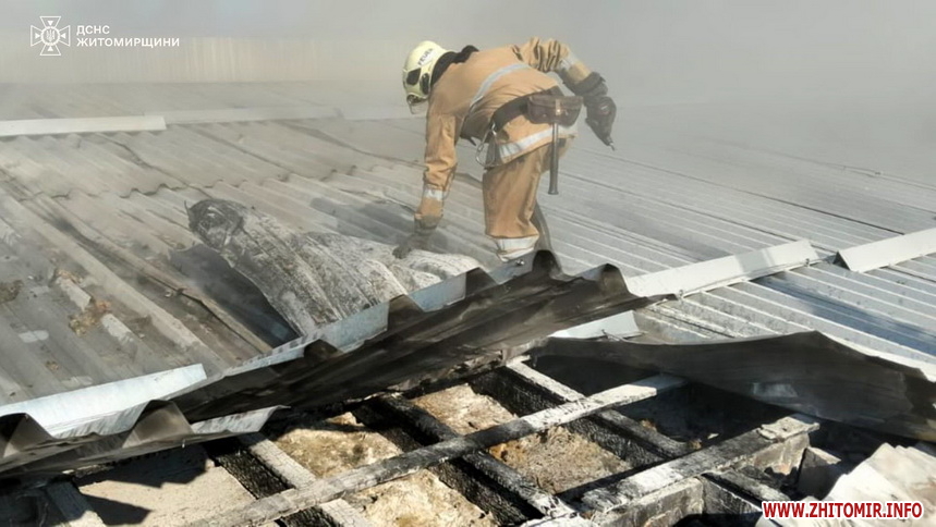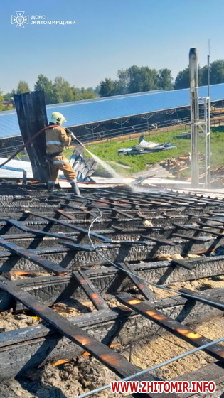 «2 серпня о 08:25 до служби порятунку «101» надійшло повідомлення про пожежу в будівлі котельні фермерського господарства в с. Ласки Народицької громади Коростенського району. На місці події з'ясувалося, що вогонь охопив частину покрівлі над котельнею та встиг поширитись далі на покрівлю над доїльним цехом. Обидві будівлі знаходились під одним дахом», - йдеться в повідомленні.