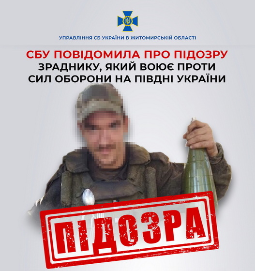 «Служба безпеки Житомирщини зібрала доказову базу на ще одного зрадника з Донеччини, який перейшов на бік загарбників та воює проти України у складі рашистської армії. За даними досудового розслідування, фігурантом є уродженець одного з сіл Шахтарського району Донеччини. Після навчання він приєднався до окупаційного угруповання. Спочатку він воював у складі «9-го окремого мотострілкового полку 1-го донецького армійського корпусу зс днр» – старшим навідником. За свої «подвиги» під час боїв за Широкино та Савур-Могилу отримав псевдомедалі від терористів», - йдеться в повідомленні.