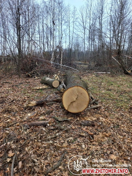 «Восени 2023 року під час розгляду звернення, яке надійшло на телефонну «гарячу лінію» Інспекції, державними інспекторами з охорони навколишнього природного середовища Поліського округу встановили факт незаконної порубки 222 дерев різних порід між селом Будище та селом Буряківка на землях комунальної власності Пулинської територіальної громади Житомирської області. Осіб, які здійснили порубку, поліції не встановила. Інспекція здійснила розрахунок розміру шкоди, завданої лісу незаконною порубкою дерев, який склав 1 млн 797 тис. 949 грн», - йдеться в повідомленні.