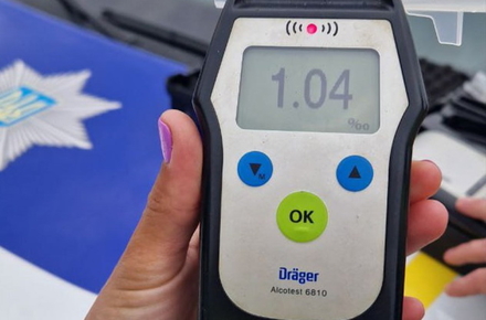 Спілкуючись з керманичем виявили ознаки алкогольного сп'яніння. Він погодився пройти освідування на місці. Результат позитивний — 1,04 проміле.