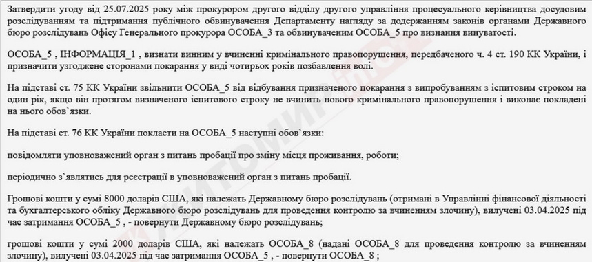 Про це йдеться у вироці Печерського районного суду м.Києва від 15 серпня 2025 року.