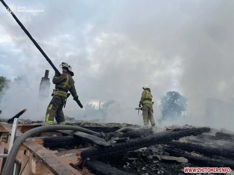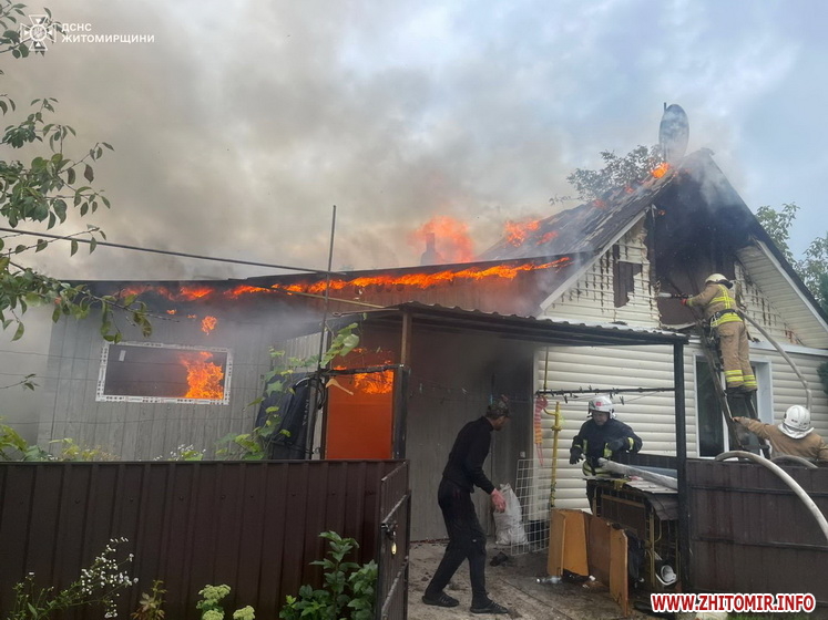«24 серпня о 16:20 до Служби порятунку «101» надійшло повідомлення про пожежу в приватному житловому будинку на двох господарів в селищі Романів Житомирського району. Через пізній виклик по прибуттю вогнем було охоплено дах будинку та полум'я поширилося всередину оселі. Площа пожежі складала близько 100 кв. м. Існувала загроза розповсюдження полум’я на розташовану поруч сусідську оселю та господарчі будівлі. Для гасіння було залучено додаткові сили та засоби», - йдеться в повідомленні.
