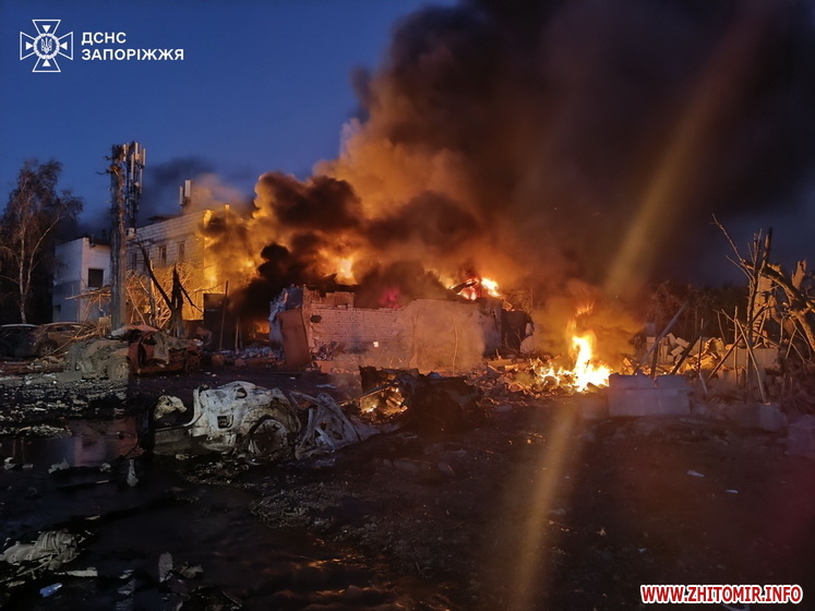 «У Запоріжжі всі служби задіяні на місці російського удару по житловій пʼятиповерхівці. На жаль, станом на зараз відомо про одну загиблу людину та десятки постраждалих, у тому числі й дітей. Знову звичайний житловий будинок. Також уночі працювали сили ППО та екстрені служби в інших регіонах. Від удару постраждали Волинська, Дніпровська, Донецька, Житомирська, Запорізька, Івано-Франківська, Київська, Рівненська, Сумська, Харківська, Хмельницька, Черкаська, Чернівецька, Чернігівська області. Багато було пожеж, переважно постраждала цивільна інфраструктура: будинки, підприємства. Майже 540 дронів, 8 балістичних та 37 ракет інших типів запустили росіяни проти звичайного життя», - йдеться в повідомленні.