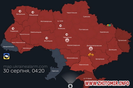 Зауважимо, повітряна тривога у Житомирській області тривала майже 7 годин. Вона почалася 29 серпня о 23.15 та закінчилася 30 серпня о 06.14 год.
