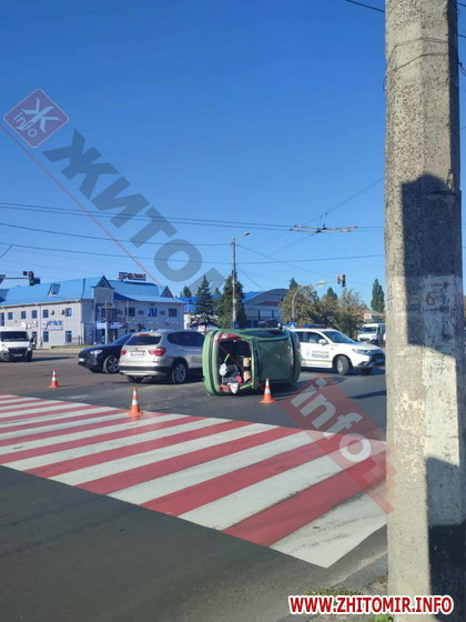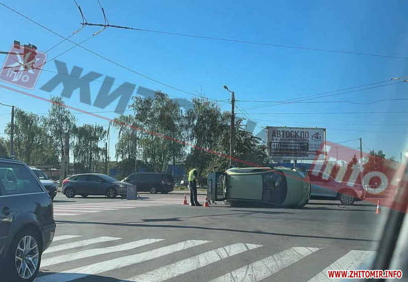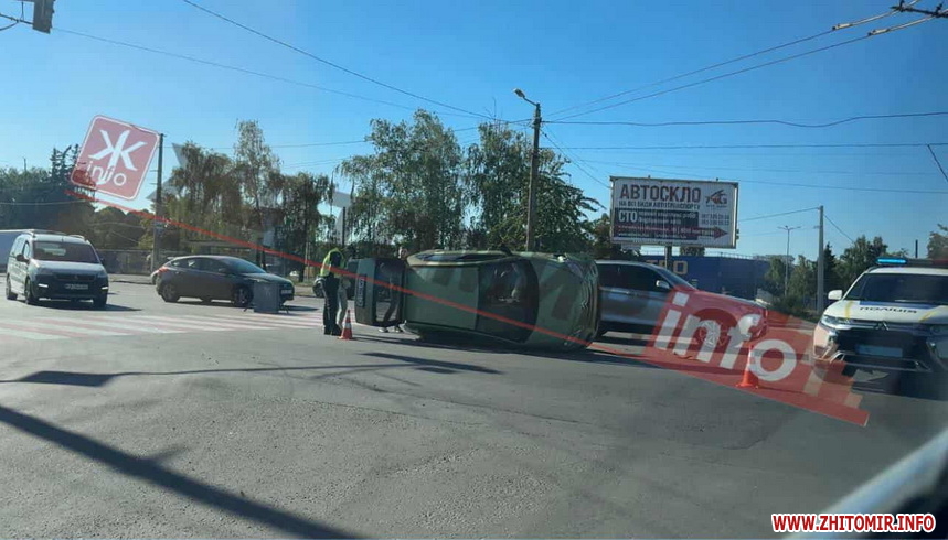 У Житомирі 2 вересня біля перехрестя проспекту Незалежності й вулиці Східної сталася ДТП, Citroen лежить на боку.