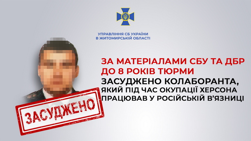 За матеріалами СБУ та ДБР до 8 років тюрми засуджено колаборанта, який під час окупації Херсона працював у російській в’язниці, де перебували українці.
