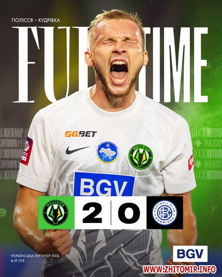 Футбольний клуб «Полісся» у 6 турі Української Прем’єр-ліги переміг ФК «Кудрівка». Матч відбувся 20 вересня у Житомирі на Центральному стадіоні.