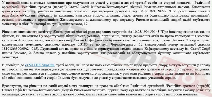 До справи також хочуть долучити релігійну громаду кафедрального костьолу Святої Софії, якій належить земельна ділянка під келіями.