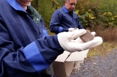 «В бригадах по три людини. Бригади ходять по територіях, в них є карта, з розрахунком стає одна людина, через 250 м друга людина, кидають вакцину через кожних 200 м. За три дні ми маємо розкидати 13 810 доз приманок на 552 кв. км», – говорить завідувачка Андрушівського відділу Житомирської обласної державної лікарні ветеринарної медицини Валентина Ястремська.