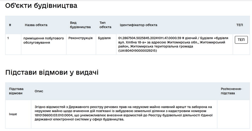 «Яким чином існування вказаного обтяження відповідає чи певним чином співвідноситься із підставою для повернення декларації, що визначена у ч.6 ст.39 Закону №3038-VI, відповідач не пояснив, а суд першої інстанції не встановив. До того ж рішенням Житомирського окружного адміністративного суду від 30.01.2025 у справі № 240/18119/24, яке набрало законної сили, встановлено, що будівельні роботи були завершені до накладення заборони. З урахуванням наведеного апеляційний суд дійшов висновку про протиправність оскаржуваного рішення», - йдеться у постанові.