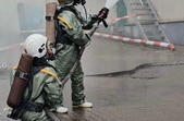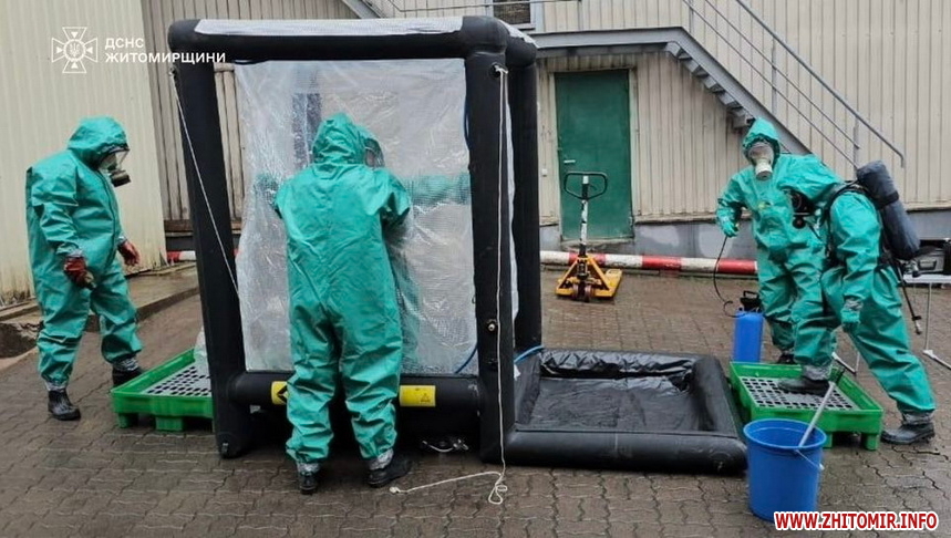 Рятувальники Житомирської області сьогодні тренувалися гасити пожежу, що спричинила викид небезпечних хімічних речовин. Два відділення рятувальників одночасно забезпечували безперебійну подачу води з гідранта, гасили пожежу та осаджували хмару небезпечних речовин.