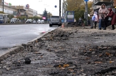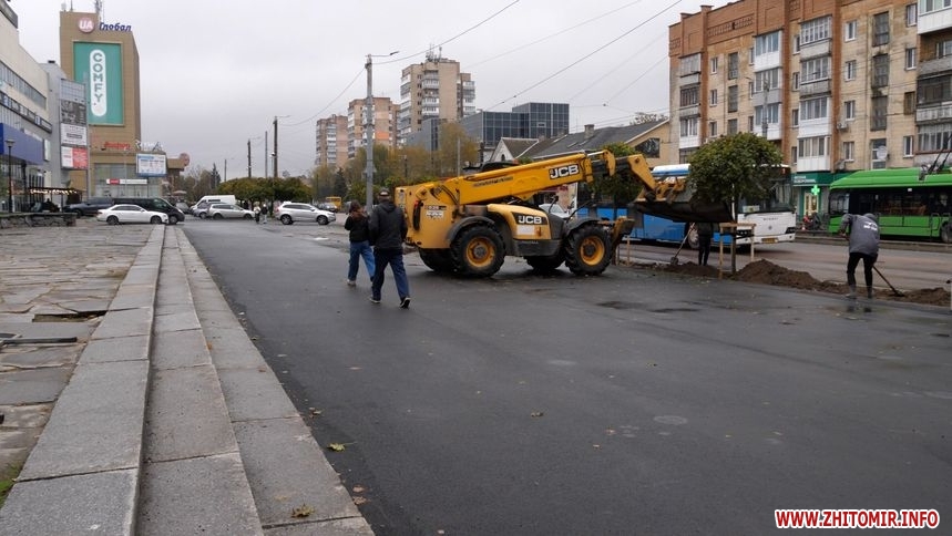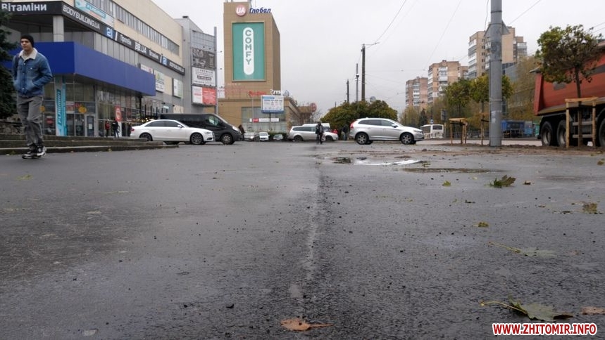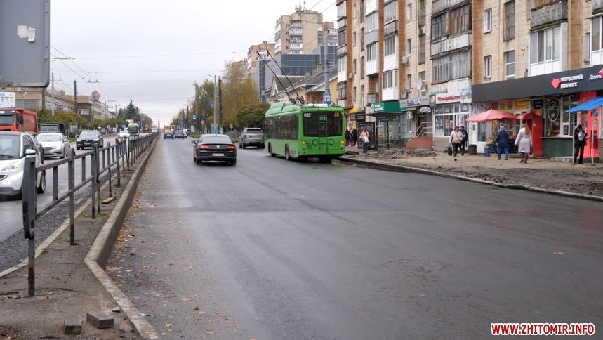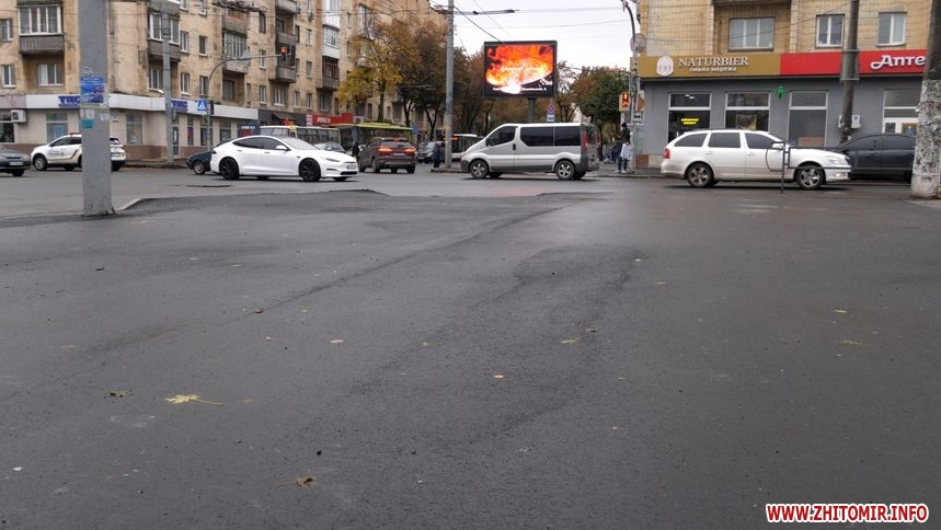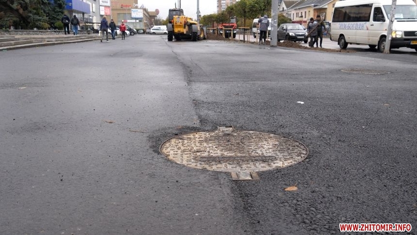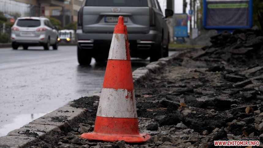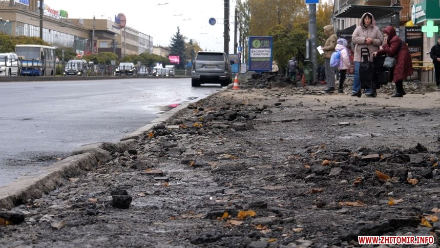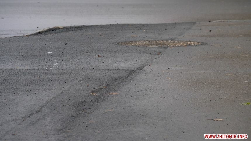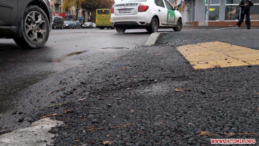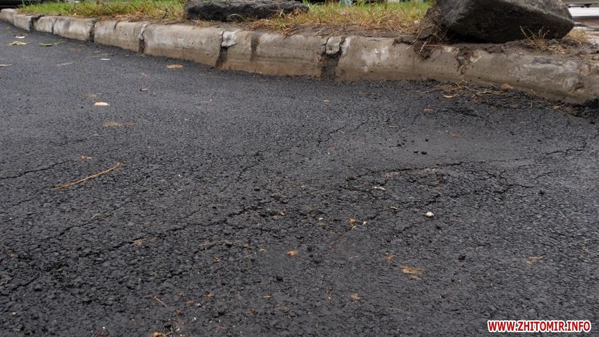 У Житомирі триває ремонт дороги на вул. Київській. На тротуарі біля ТЦ «Ярмарок», де нещодавно поклали новий асфальт, 20 жовтня помітно криве покриття з тріщинами та нерівностями.
