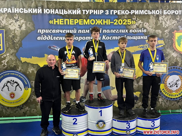 «З 17 по 19 жовтня 2025 року у м. Костопіль (Рівненська область) відбувся Всеукраїнський турнір «Непереможні – 2025» з боротьби греко-римської серед юнаків присвяченого пам’яті полеглих воїнів відділення боротьби Костопільщини – Віталія Ставського, Андрія Примака, Назарія Корнійчука, Михайла Лазуцькрго. Участь у турнірі взяли понад 230 спортсменів із різних областей України. Збірна команда Житомирської області продемонструвала високий рівень підготовки, сили духу та жаги до перемоги. Наші юні борці вибороли шість призових місць», - йдеться в повідомленні.