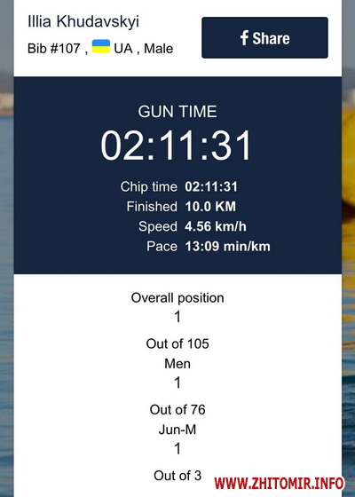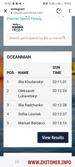 «Житомирянин Ілля Худавський, Майстер спорту України з плавання, став переможцем престижних міжнародних змагань з плавання на відкритій воді Oceanman Ibiza (Іспанія), що проходили цими вихідними – 18 і 19 жовтня 2025 року. Тренери: заслужені тренери України Віктор Демб з Житомира та Марія Голуб з Києва», - йдеться у повідомленні.