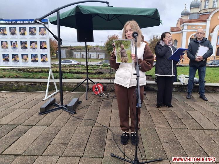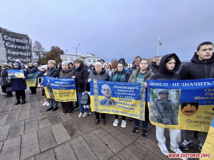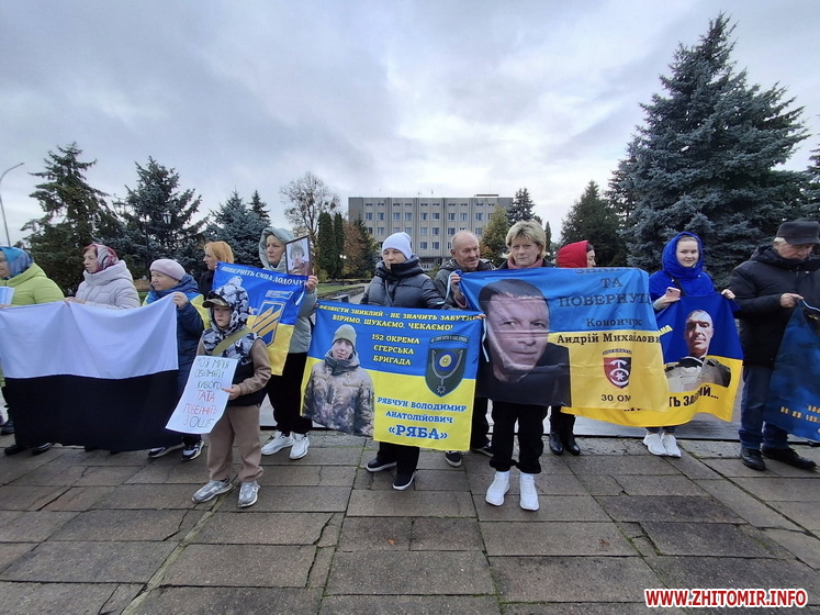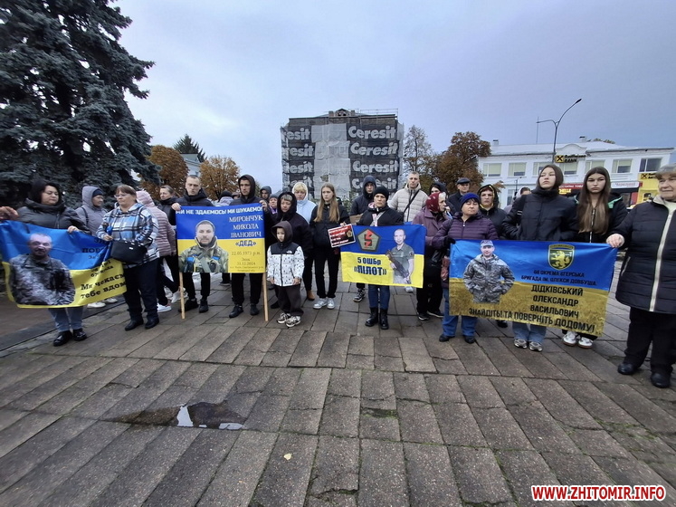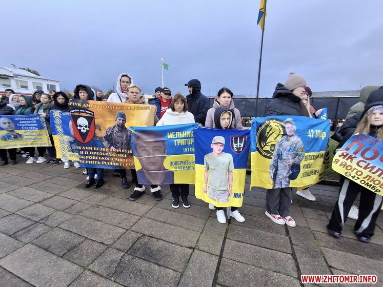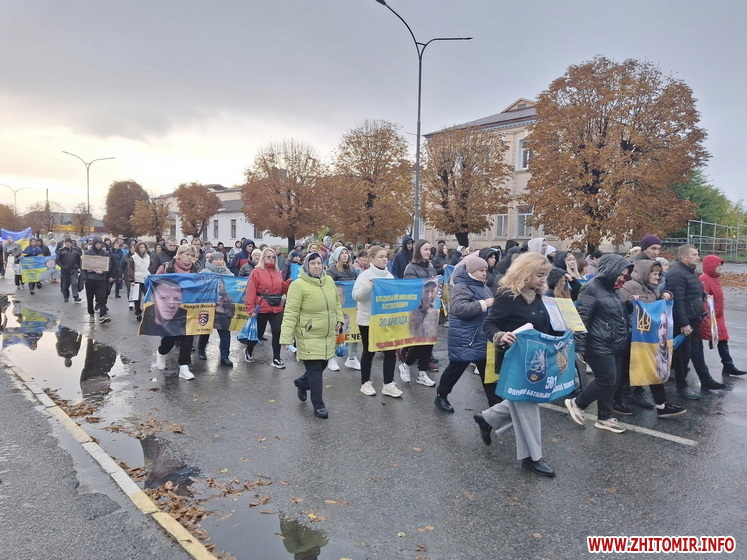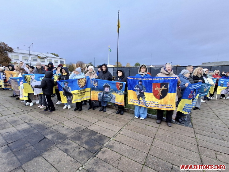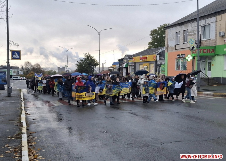 Як повідомляв Житомир.info, у Житомирі вдень 26 жовтня 2025 року відбулася чергова акція-нагадування на підтримку полонених та безвісно зниклих військових. Понад сто людей зібралися на майдані Корольова та з плакатами вийшли на Київську і Михайлівську вулиці.