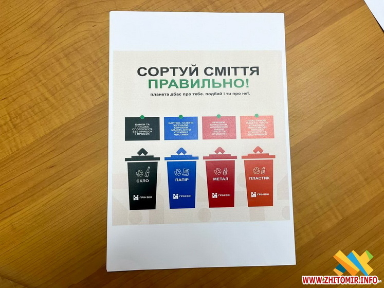 «У Житомирській громаді розпочинають реалізацію пілотного екологічного проєкту «Утилізація побутових відходів у закладах освіти». Учасники — ліцеї №14, 22, 24, 30, 31 та заклади дошкільної освіти №34, 44, 46, 55, 66. У цих закладах встановлять контейнери для роздільного збору сміття: для паперу, пластику, скла та органічних відходів», - йдеться у повідомленні.