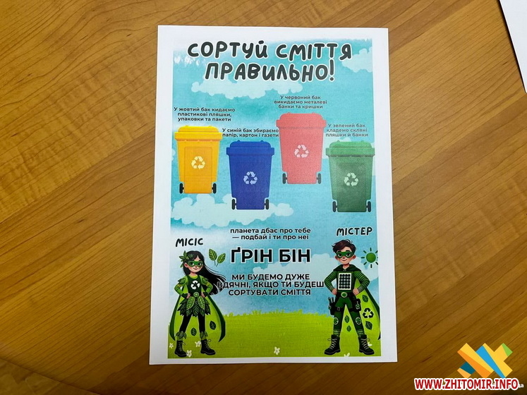 «Потрібно ще змалку привчати дітей до культури сортування. Культура правильного розділення сміття має стати загальноприйнятою нормою, а впроваджувати цю норму треба з дитинства. Це допоможе зменшити навантаження на полігон твердих побутових відходів, який використовується ще з 1957 року і майже вичерпав свій ресурс. Ми маємо у Житомирі унікальний сміттєпереробний завод, який здатний ефективно переробляти відходи, тож варто використовувати ці можливості комплексно», — зазначила секретар міської ради Галина Шиманська.