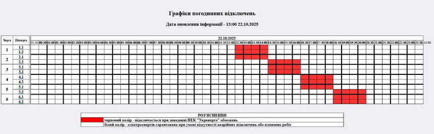 У Житомирській області у середу, 22 жовтня, ввели в дію графіки погодинних відключень електроенергії (ГПВ).