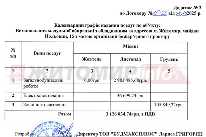 ТОВ «Будмаксплюс» має за 3 млн 126 тис. 034,74 грн встановити на Польовій інклюзивну модульну вбиральню до 31 грудня 2025 року.