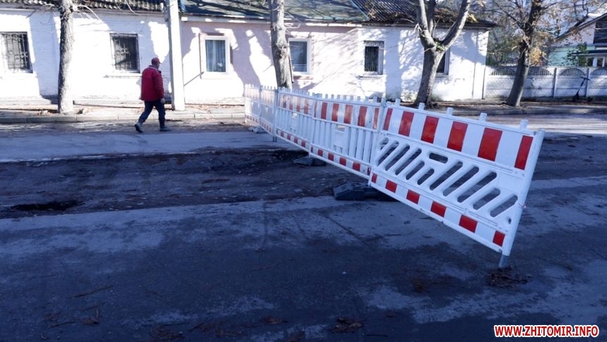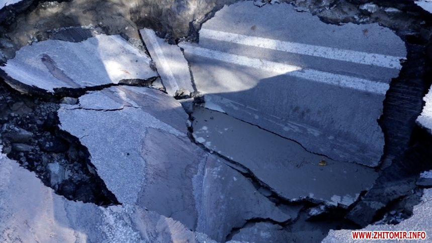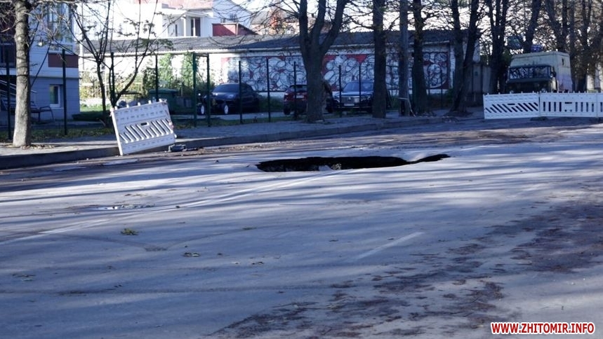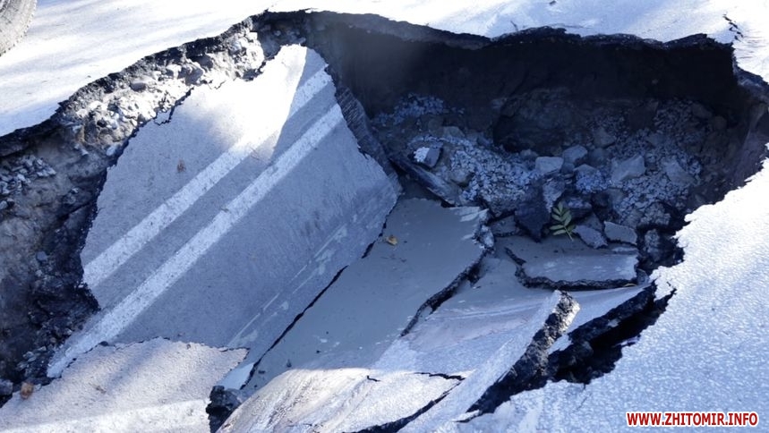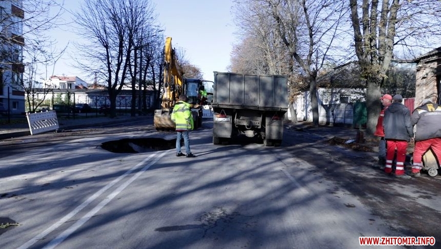 «Провалля сталося 26 жовтня. Почали земельні роботи: розкриваємо асфальт, риємо землю, монтуємо під перекладку десь 50 м каналізаційного коректора діаметром 600 мл. Ми плануємо закінчити ремонт десь до п'яти діб», – говорить заступник директора КП «Житомирводоканал» Сергій Басанський.