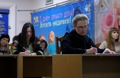 «Я прочитала обидві книги Євгенії Кузнецової – це «Спитайте Мієчку» та «Драбина». Багато думала над тим, тому що автор вдало передає переживання українців у книжках. Дуже чуттєво, є над чим поплакати та посміятися, дуже багато гумористичних моментів. Сьогоднішній текст насправді чудовий, в стилі Євгенії Кузнецової. Думаю є трохи помилок у розділових знаках, але оскільки навчалася гарно, були гарні вчителі, думаю, що помилок було мінімум. В Баранівському районі вживають слова «пораділо», «кияхи», тому я пораділа, що воно стає відомим, і воно саме про нас, про Житомирщину», – ділиться методист НМЦ департаменту освіти Житомирської міської ради Наталія Шикирава