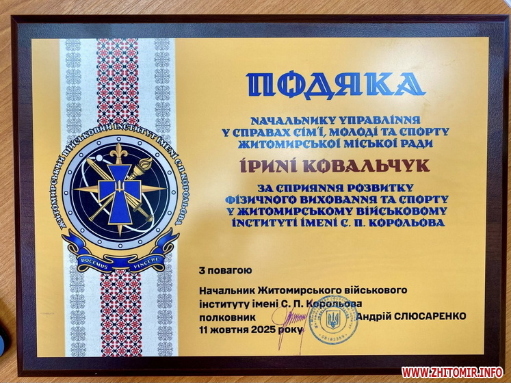 Про це 28 жовтня повідомила пресслужба управління у справах сім’ї, молоді та спорту Житомирської міської ради.