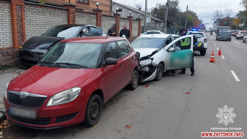 Нагадаємо, вранці 24 жовтня у Житомирі на перехресті вулиць Бориса Тена й Івана Мазепи сталося дві ДТП: у першому випадку зіштовхнулись Mercedes і Skoda, там були потерпілі; інша дорожньо-транспортна пригода сталася за участю ВАЗ і Mazda, без потерпілих.