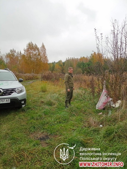 «У рамках патрулювання Пункту екологічного контролю №1 держекоінспектори Поліського округу фіксують не тільки стихійні сміттєзвалища, а й факти засмічення територій підпорядкованих громад відходами. Так, 18 і 26 жовтня на території Оліївської територіальної громади, у ході проведеного заходу поблизу села Вільськ екоінспектри виявили та зафіксували факти засмічення лісу відходами. Порушників притягнуто до адміністративної відповідальності за статтею 73 КУпАП «Засмічення лісів відходами» на суму 425 грн», - йдеться в повідомленні.