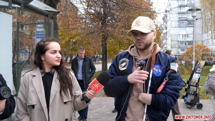 «До Житомира ми приїхали з командою з руху безбар'єрності, для того, щоб проінспектувати, перевірити й взагалі зі сторони мене, як військового, як реальної людини, побачити готовність цього маршруту й безбар'єрність. Перевірити норми й взагалі, як воно будується й чи дотримуються цих норм», – сказав військовослужбовець Андрій Соловко.