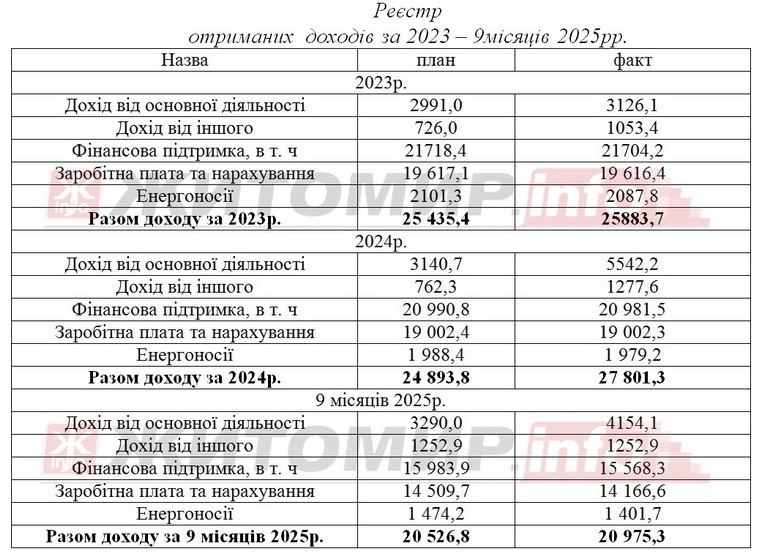 За 2023 рік драмтеатр отримав 25 млн 883,7 тис. грн доходів, за 2024 – 27 млн 801,3 тис. грн, за 9 місяців 2025 року – 20 млн 975,3 тис. грн.