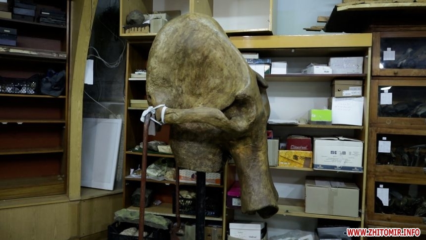 Це череп та кістки мамонта. Скелет належить до колекції Житомирського обласного краєзнавчого музею. Зараз його в розібраному вигляді зберігають у сховищі, для людей він не доступний.